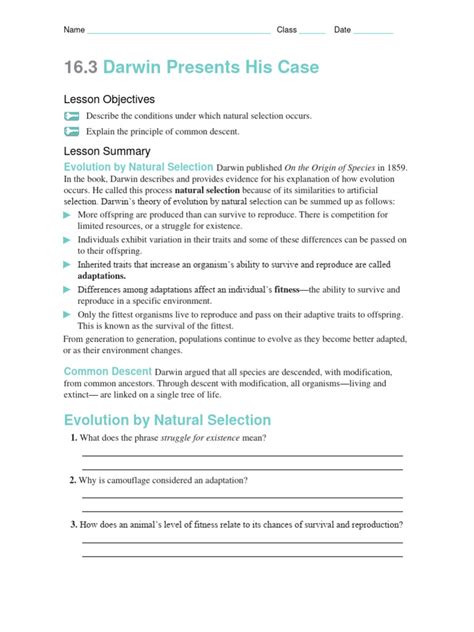 Read Online 163 Darwin Presents His Case Answer Key PDF