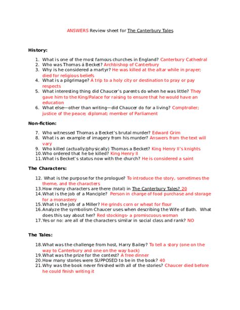 Read Answers To Canterbury Tales Study Guide Reader